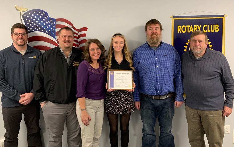 This week the St. Marys Rotary Club recognized Emma Repko as the January Student of the Month from Elk County Catholic High School. Emma is pictured with her mom Tara Schatz, George Schatz, her dad Bill Repko and her grandfather Bill Repko, along with club president Josh Hanes. The club extends congratulations to Emma!